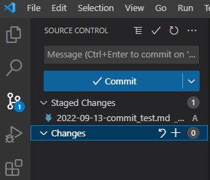 Push를 하기 위해 '+' 모양의 아이콘을 눌러 staged 상태로 변경해줍니다.